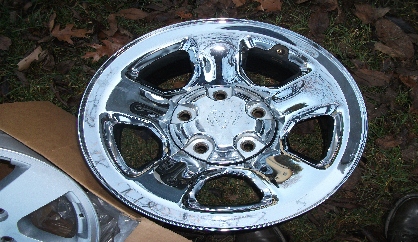 2004 thru 2019 Dodge RAM 5 stud chrome clad 17" used wheels with caps. Not as pretty as this picture but solid $500.00 plus tax |