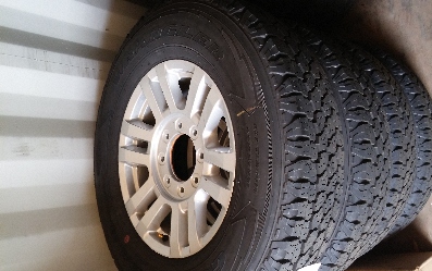 2004 thru 2017 F150 17" alloy with P265x70x17 Goodyear tires. 6 stud mounting .. Includes TPMS {for some years} $1600.00 including all taxes |